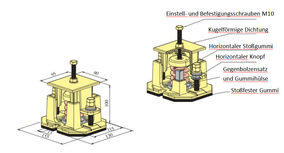 Die Feder ist mit einem niedrigen Eigenfrequenzwert mit einer Durchbiegung von 25 mm ausgelegt.