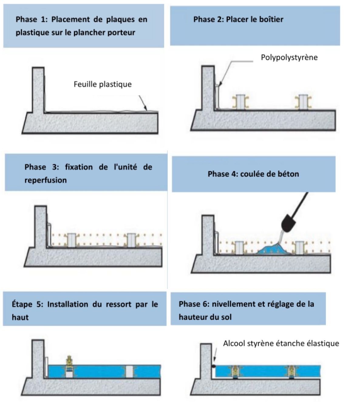 Étapes de construction du fond flottant à ressort: